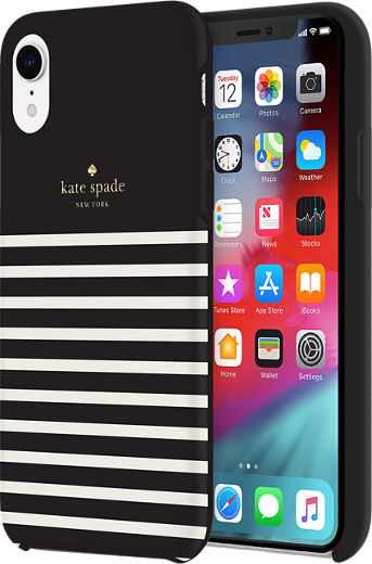 Kate Spade New York Defensive Hardshell Case 1 Pc Comold For Iphone Xr Park Stripe Gold Foil Black Cream Cream Bumper Clear