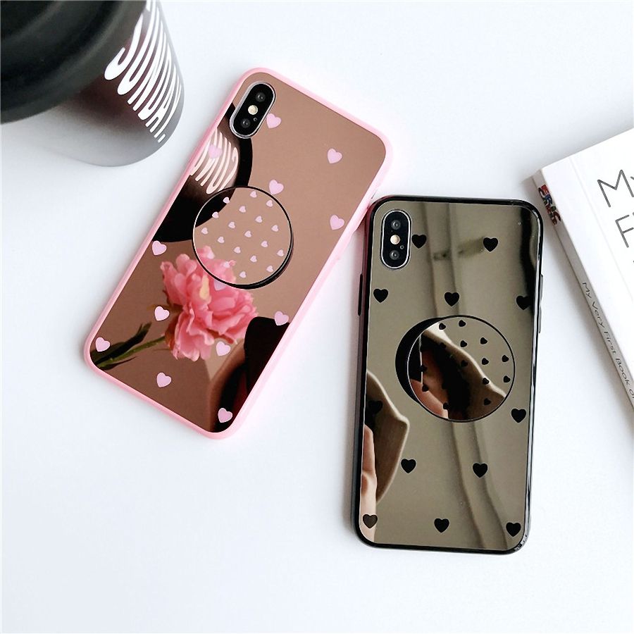 Iphone Case Rings Back Mirror Phone Case With Ring Holder For Iphone X Xs Max Xr 6 7 8 6s Plus Soft Tpu Protective Case Back Cover Wholesale Free Cell