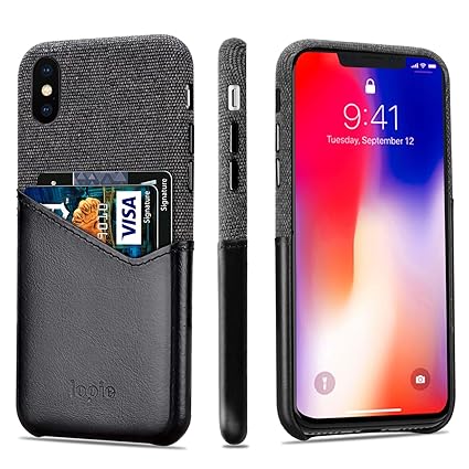 Lopie Iphone Xs Max Hulle Mit Kartenfach Iphone Xs Max Hulle Leder Sea Island Cotton Series Stoff Echtleder Wallet Schlankem Card Holder Handy