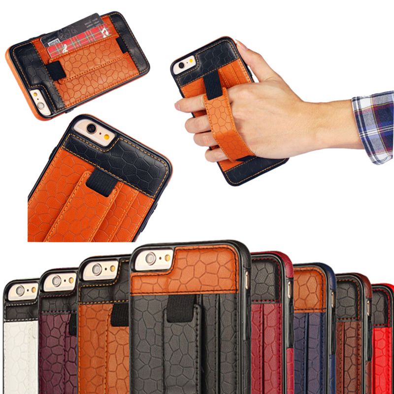 New Fashion Hand Strap Buckle Anti Slip Leather Case With Card Slot Stand Case Cover For Iphone 6 6s
